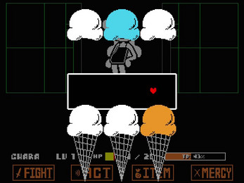 I love how you merged UNDERTALE and deltarune to make a fantastic fan game. Also, I think that the Tepe attack is very funny. You did really well. It feels like I'm playing the actual game (not that I actually played it, lol).